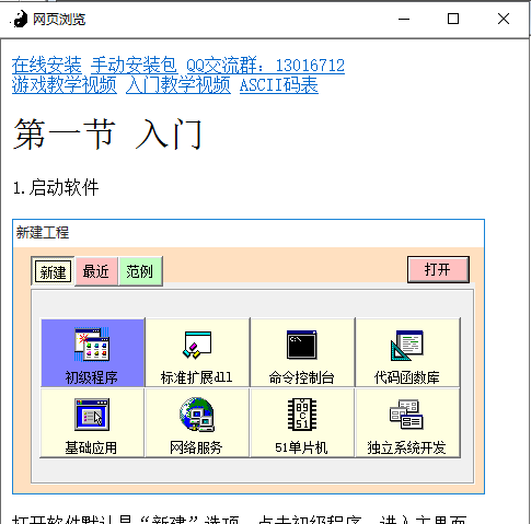 极语言简介极语言简介1.启动软件打开软件默认是“新建”选项,点击初级程序。进入主界面。例题一:初级程序。