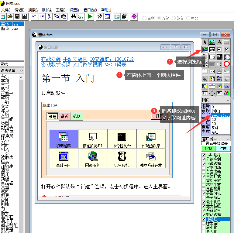 在“显示菜单_点击”这段程序里添加“显隐窗口(网页,窗口显示)”