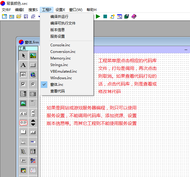 代码窗口(窗体.bac)里面会自动添加两个程序段。