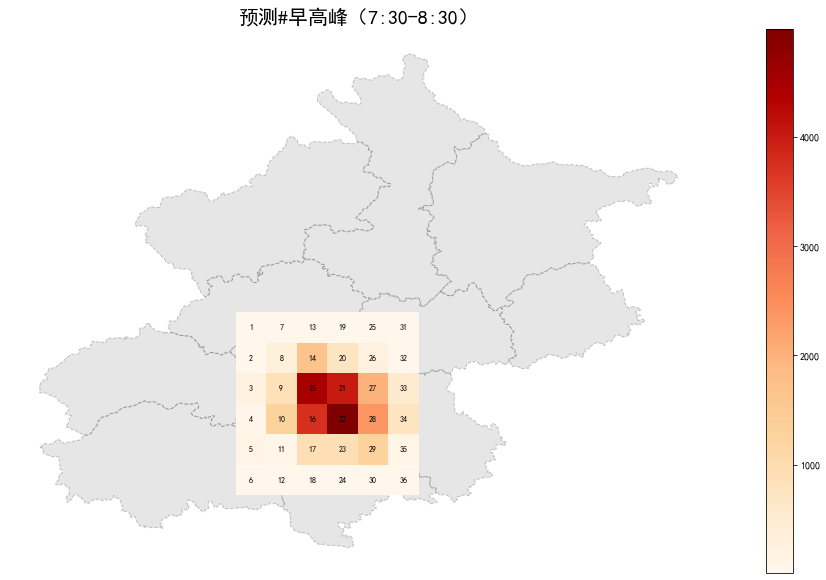 各个栅格内预测需求与真实需求整体很接近,说明该模型能够较好的预测各高峰时段的共享单车出行需求。