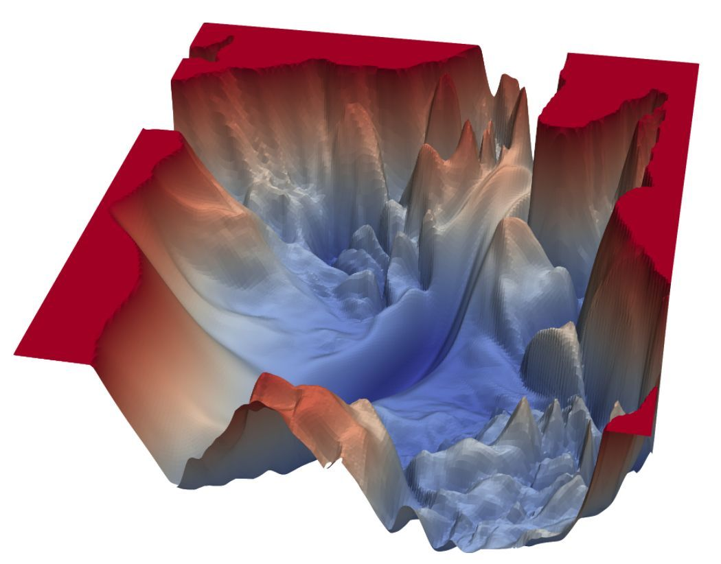一个复杂的损失函数图像(图源:https://www.cs.umd.edu/~tomg/projects/landscapes/)