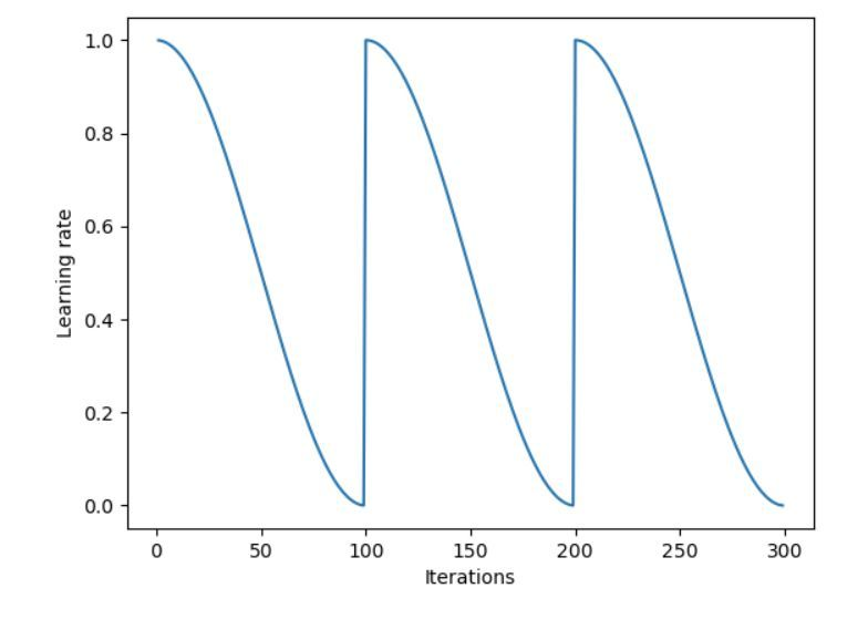 所谓暖重启的随机梯度下降,基本上是将学习率退火到一个下限,然后将学习率恢复到初始值。