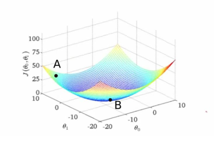 我们需要寻找一种能够导航到「谷底」B 点处的方法,这里的损失函数值最小。那么我们要怎么做呢?