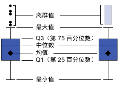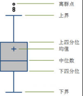 - IQR = Q3-Q1,即上四分位数与下四分位数之间的差,也就是盒子的长度。