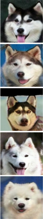 | cat2dog and photo2portrait | 这些数据集曾被用于DRIT。每类数据集的数量如下: 871 (cat), 1,364 (zebra), 6,452 (photo), and 1,811 (vangogh).我们分别随机选择120幅(马)、140幅(斑马)、751幅(照片)和400幅(梵高)图像作为测试数据。 |