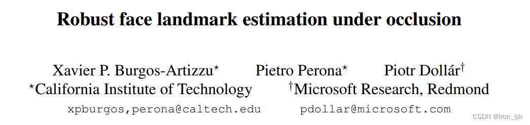 Paper:https://openaccess.thecvf.com/content_iccv_2013/papers/Burgos-Artizzu_Robust_Face_Landmark_2013_ICCV_paper.pdfDataset:https://data.caltech.edu/records/20099动机在这篇文章中,作者为了解决面部关键点估计时的遮挡和形状的差异问题,提出了