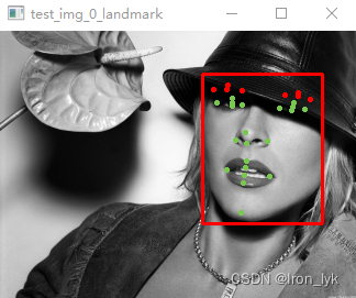 提取人脸关键点坐标及其能见度,并可视化(红色的点表示被遮挡,绿色的点表示可见),代码如下: