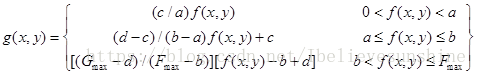 假定原图像A(x,y)的灰度变换范围为[a,b],处理后的图像B(x,y)的灰度变换范围为[c,d],线性灰度变换运算的数学表达式为: