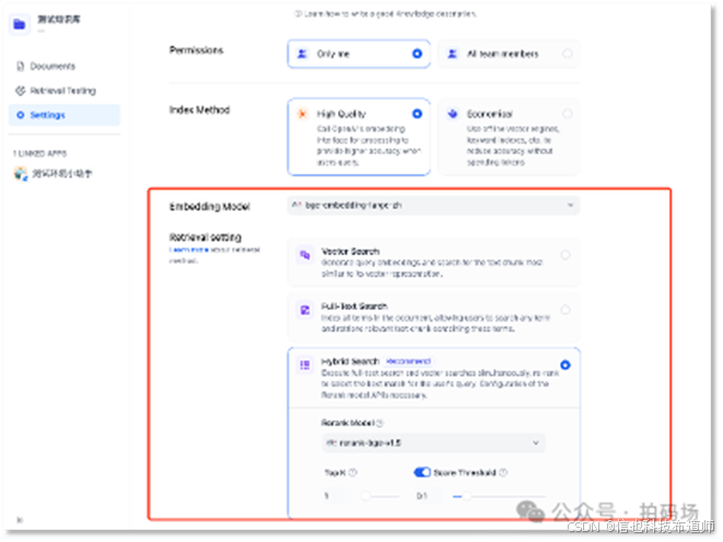 - 分数阈值:只召回多少检索分数以上的结果