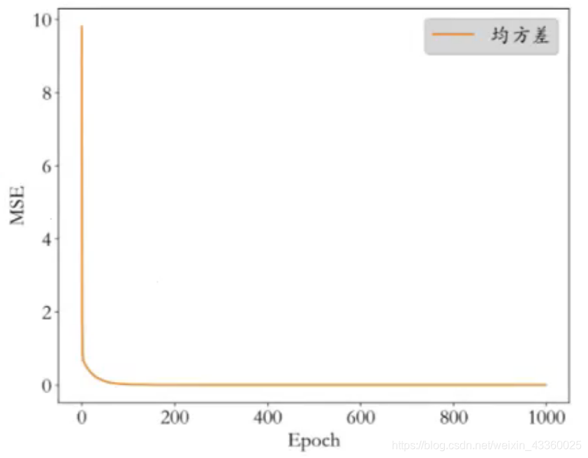 在上述迭代过程中,迭代次数与均方差误差MSE之间的关系如下图: