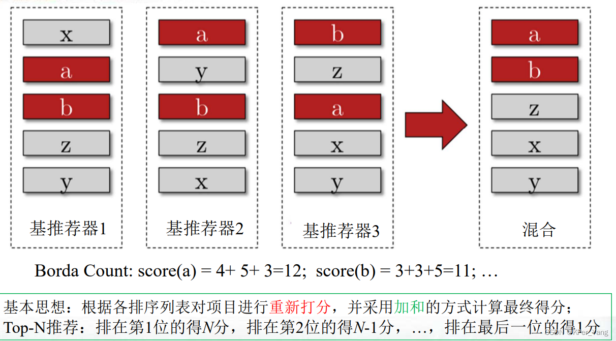 基本思想:直接对已有的基推荐器的输出结果进行混合;无需对现有基推荐器做修改