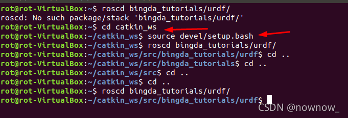 roscd: No such package/stack 'bingda_tutorials/urdf/'