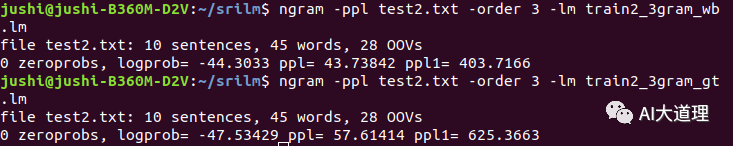 上面搭建的系统进行了词频统计和n-gram模型训练与测试,针对相同数据使用SRILM语言模型工具包进行对比。