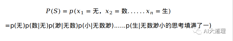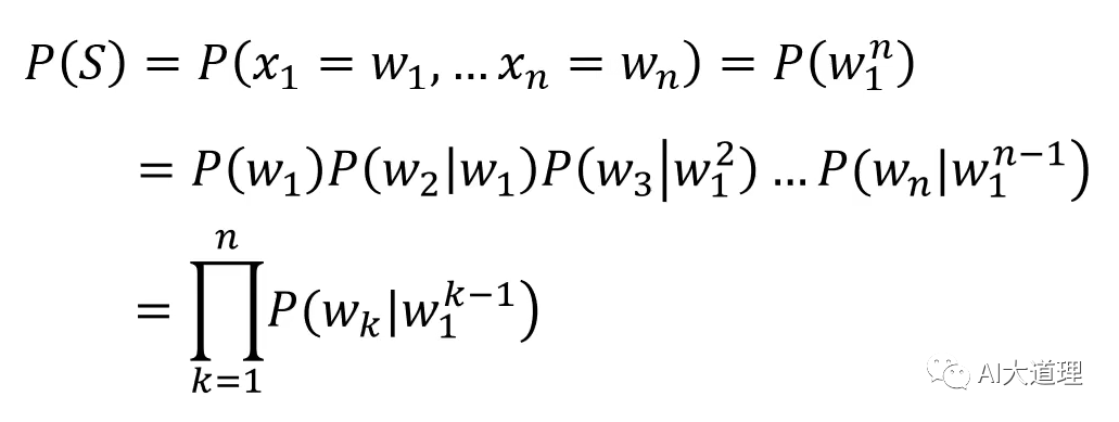 公式:给定一个词序列S=(w1,w2,w3......wn),它的概率表示为: