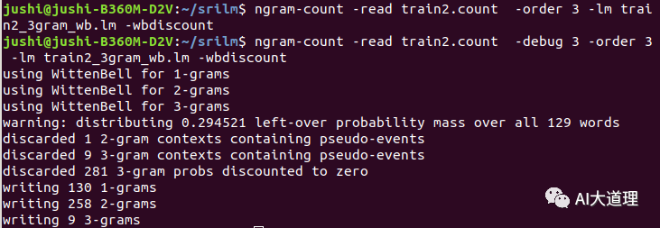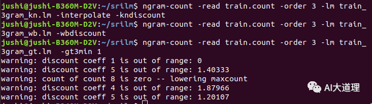 使用witten bell平滑算法进行语言模型训练命令: