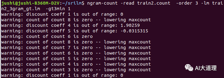 使用Good-Turing平滑算法进行语言模型训练命令: