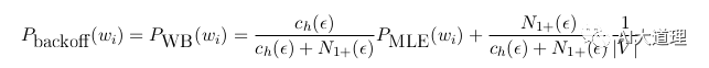 思想:又称为Back-off 回退,是对古德图灵模型的改进。若N阶语言模型存在,直接使用打折后的概率(常使用Good-turing算法进行打折);若高阶语言模型不存在,将打折节省出的概率量,依照N-1阶的语言模型概率进行分配,依此类推。
