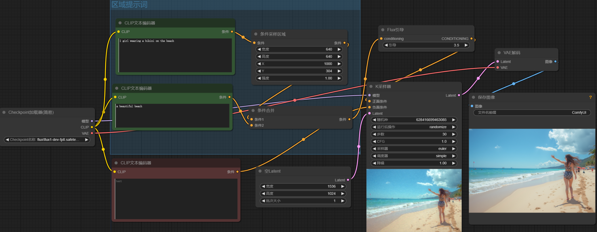 基于 ComfyUI 原生的 FLUX.1 分区域融合出图技巧,效果超级棒!