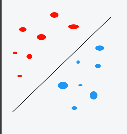 想象你在两堆不同颜色的气球(红/蓝)之间画分隔线: