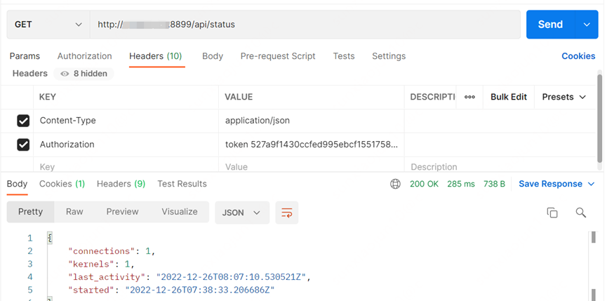 //返回结果中包含了http://x.x.x.x:8899?token=ABC 的信息,其中的ABC就是我们需要的token
