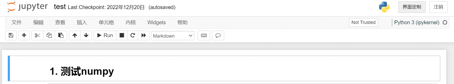 •Raw NBConvert单元格。原始的文本,不会被当作代码或markdown被解释执行