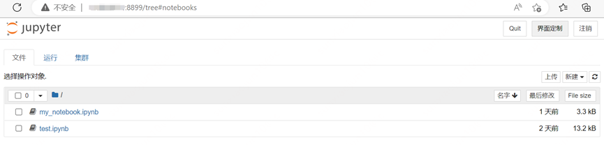 启动Jupyter 后,在浏览器内输入 http://服务器地址:端口/,Jupyter会默认重定向到.default_url指定的工作区目录树地址,默认是工作区目录树的界面。