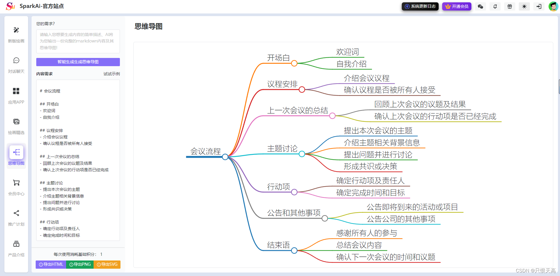 思维导图:一键根据需求生成思维导图,可导出不同类型图片