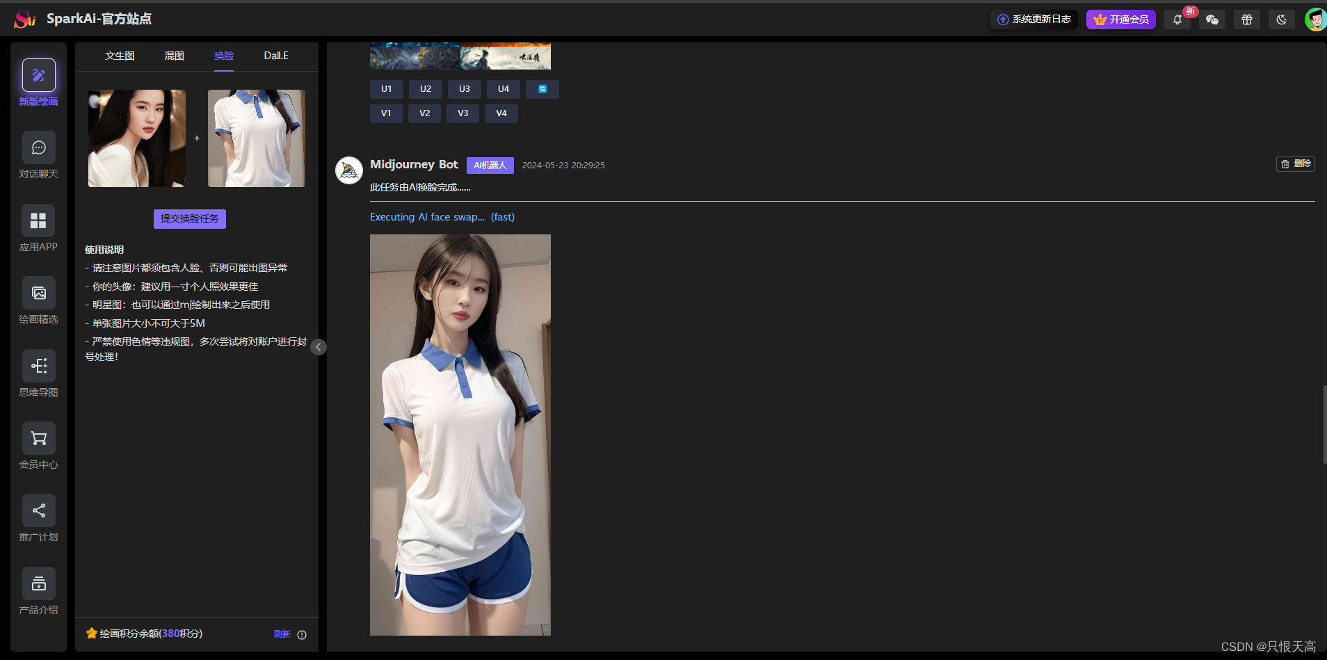 已支持 OpenAI GPT全模型 、 国内AI全模型 、AI绘画(Midjourney绘画动态全功能)、AI换脸 、GPTs、MJ局部编辑重绘功能、语音对话功能 、 文档分析功能 、插件功能!