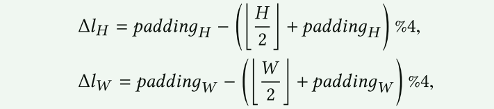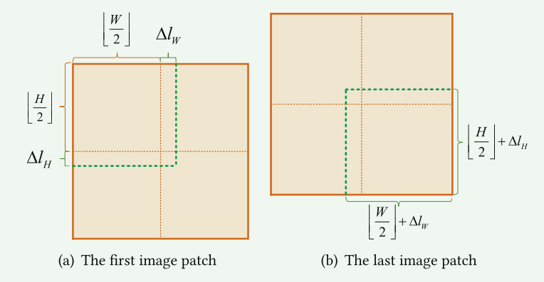 这四个patch可以并行处理(它们具有相同的大小),之后将输出粘贴到其原始位置,并丢弃额外的增量(ΔlH 和 ΔlW)。