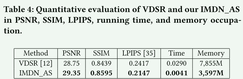 3我们通过实验探索影响实际推理时间的因素,发现网络深度与执行速度有关。 它可以作为指导轻量级网络设计的指南。 我们的模型在视觉质量、推理速度和内存占用之间实现了出色的平衡。