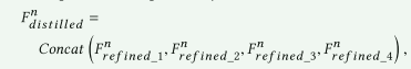 渐进细化模块 (PRM) 首先采用 3 × 3 卷积层来提取输入特征,以用于后续的多个蒸馏(细化)步骤。 对于每个步骤,对前面的特征进行通道分割操作,这将产生两部分特征。 一部分被保留,另一部分被输入到下一个计算单元。 保留的部分可以看作是细化的特征。用公式表示PRM计算过程