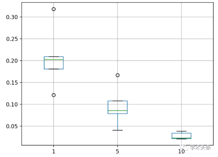 最后结果的箱线图创建来用于比较每个不同配置的模型技能的分布。