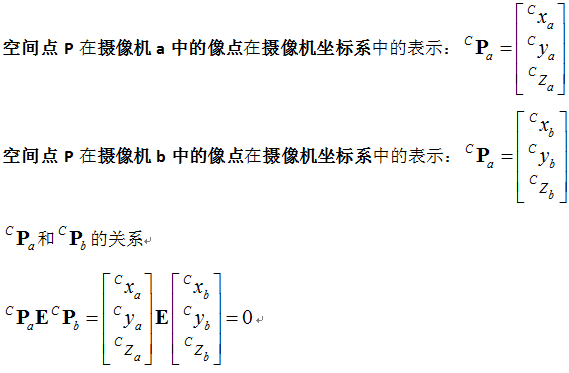 本质矩阵E(Essential Matrix):反映【空间一点P的像点】在【不同视角摄像机】下【摄像机坐标系】中的表示之间的关系。