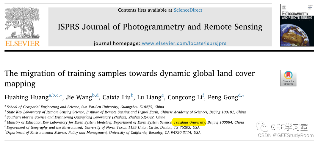 我们今天分享的就是宫鹏老师团队在2020年发表在ISPRS期刊上的论文“The migration of training samples towards dynamic global land covermapping”,里面涉及到的样本迁移操作,具体信息如下:
