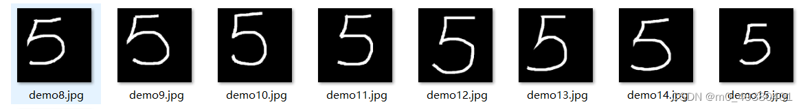按照数字0 – 9 通过前端页面手写输入的方式,合计生成了1200个左右的新图片作为训练数据集(这里只是做demo演示用,所以数量不多):