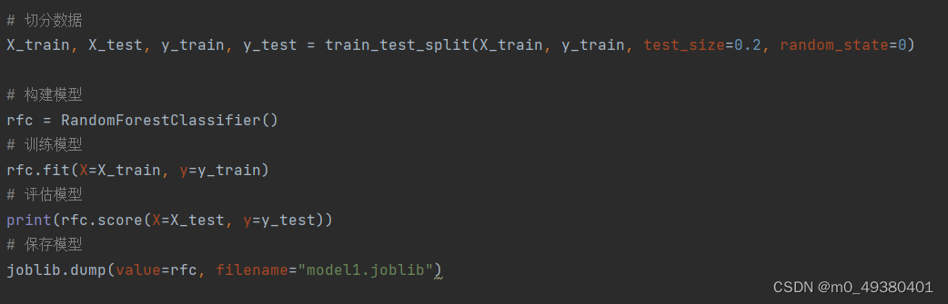 接下来是构建模型及训练的过程,这里使用了sklearn的函数train_test_split来切分训练数据集与测试数据集: