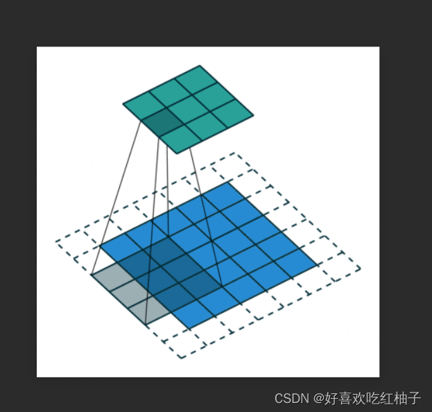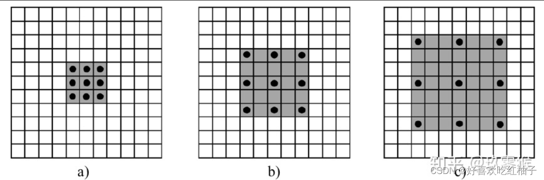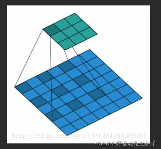 2. dilation:空洞卷积,如右图,进行卷积操作时会隔n个取一个。