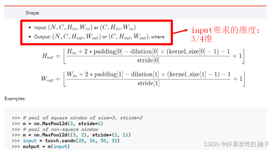 输入的input要求为四维或者三维,需要输入通道数以及长和宽。