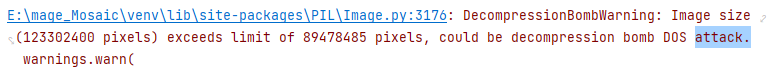 DecompressionBombWarning: Image size (123302400 pixels) exceeds limit of 89478485 pixels, could be decompression bomb DOS attack.