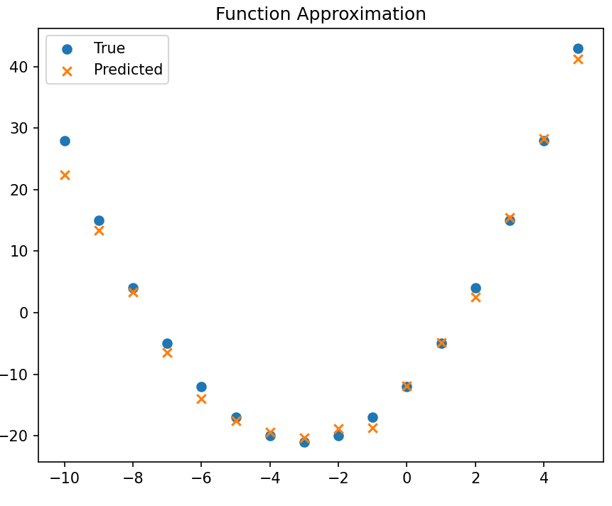 plt.scatter(x, net.forward(x), marker='x', label="Predicted")