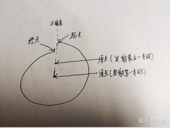 假设我们把这个雷达放在一个圆柱形的建筑正中心,那么在静止状况下,如果我们只取64条线中的一条线,那么我们得到的就应该是一个圆环。就像下面这张丑图画的这样