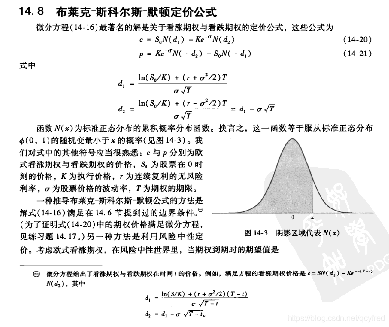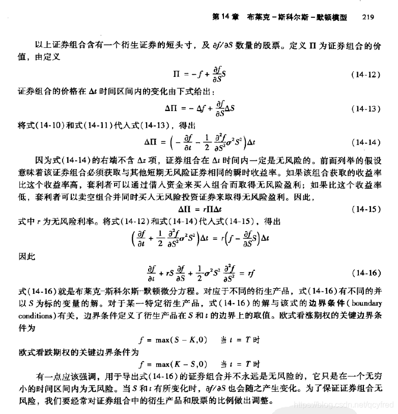 公式来自于文献[1]。在某些假设下,期权、标的资产的价格满足一个扩散方程(某一类偏微分方程)。