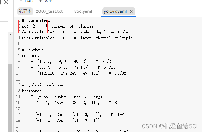 第二步:修改yolov7.yaml文件