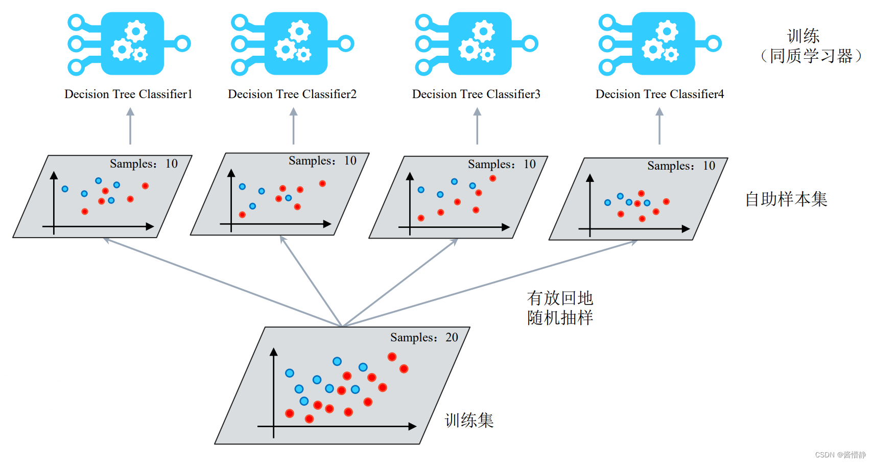 - 首先对训练数据集进行多次采样,保证每次得到的采样数据都是不同的;