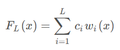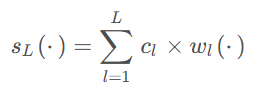 在自适应提升算法中,我们将集成模型定义为 L 个弱学习器的加权和: