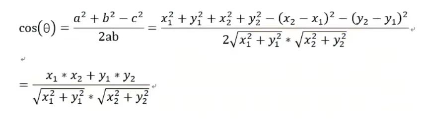 夹角余弦:
