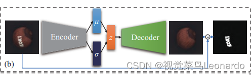 AE采用编码器-解码器结构,编码器将图像编码为z,解码器利用z重建图像,根据误差即可实现缺陷定位,但是在重建时存在模糊现象,因此在计算重建误差时,容易造成正常像素点的误检。(重建后的图像,除了缺陷部位都完成重建与原图相同,缺陷部位未能完成重建,差异部分为缺陷)
