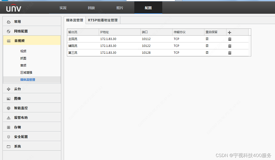 (1)在摄像机的网页界面配置-音视频-媒体流管理中删除媒体流