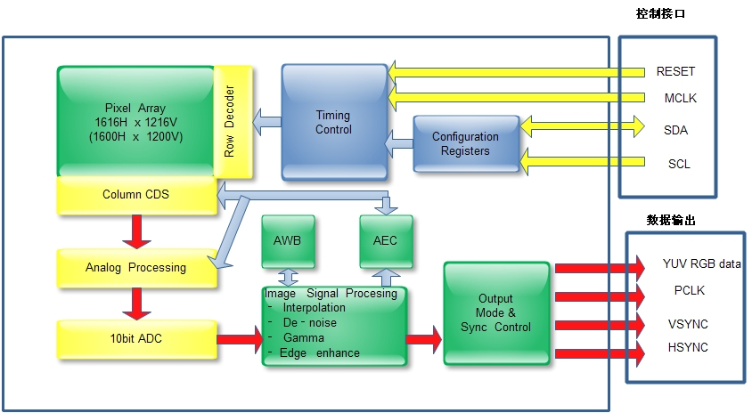 SCL,SDA:I2C用来读写sensor的寄存器,配置sensor。