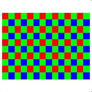Sensor的彩色滤镜阵列元件,基本上是采用了Bayer图样(RGRG/GBGB排列如上图)的排列方式,实现RGB三原色滤镜依序,以Striped Array(条状阵列)形式,红、蓝、绿相互交替,各施其职,分别去 "捕捉" 三原色的光能量。以光学的角度而言,应该说成是光线通过镜头的不同镜片组,投射抵达至整合了Bayer图样的条状阵列RGB滤镜的图像传感器,而图像传感器记录了进光量的电荷,转成数字参数,成为了RAW文件的图像信息即RAW DATA。